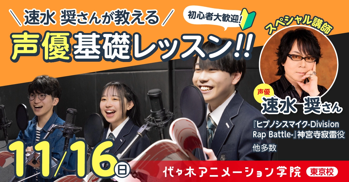 アフレコブースや液晶ペンタブレットなどプロと同じ環境・機材で、業界で活躍するプロの講師から学ぶことができます。