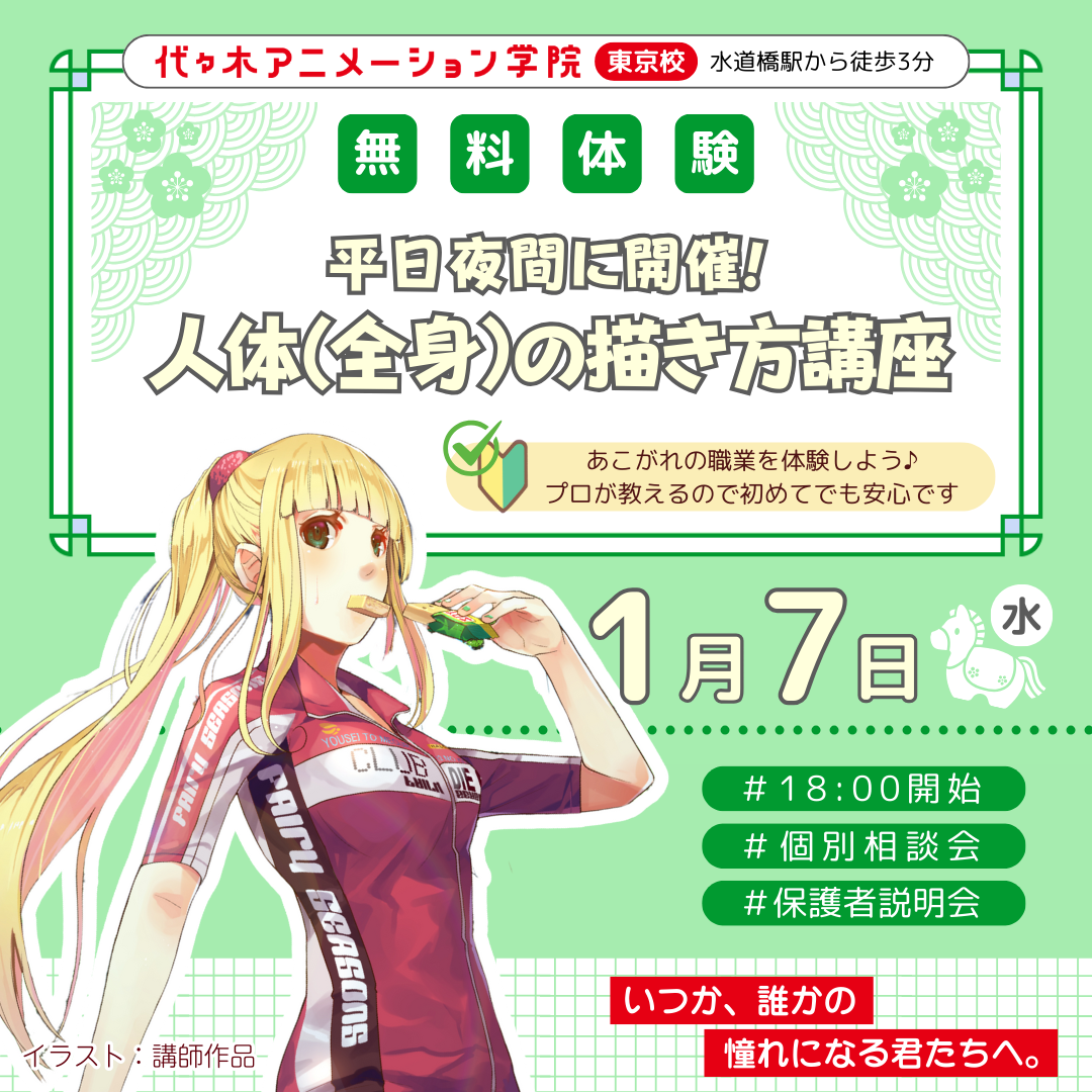 【 イラスト科 】<夜間開催> 人体の描き方講座 ~バランスの良い『全身』編~