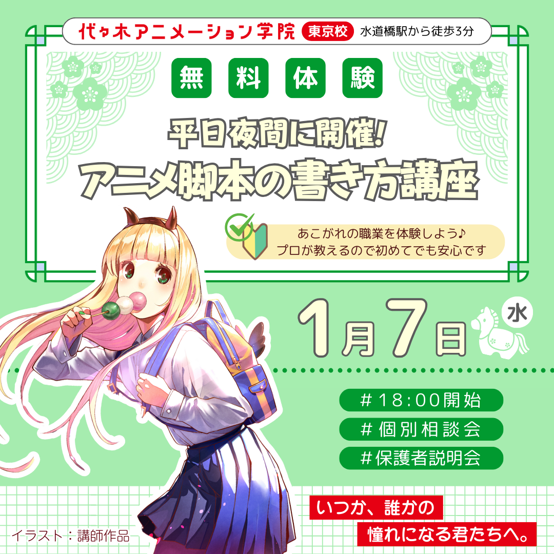 【 シナリオ・小説科 】<夜間開催> プロが教える! アニメ脚本の書き方講座