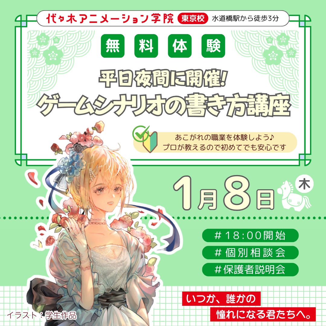 【 シナリオ・小説科 】<夜間開催> プロが教える! ゲームシナリオの書き方講座