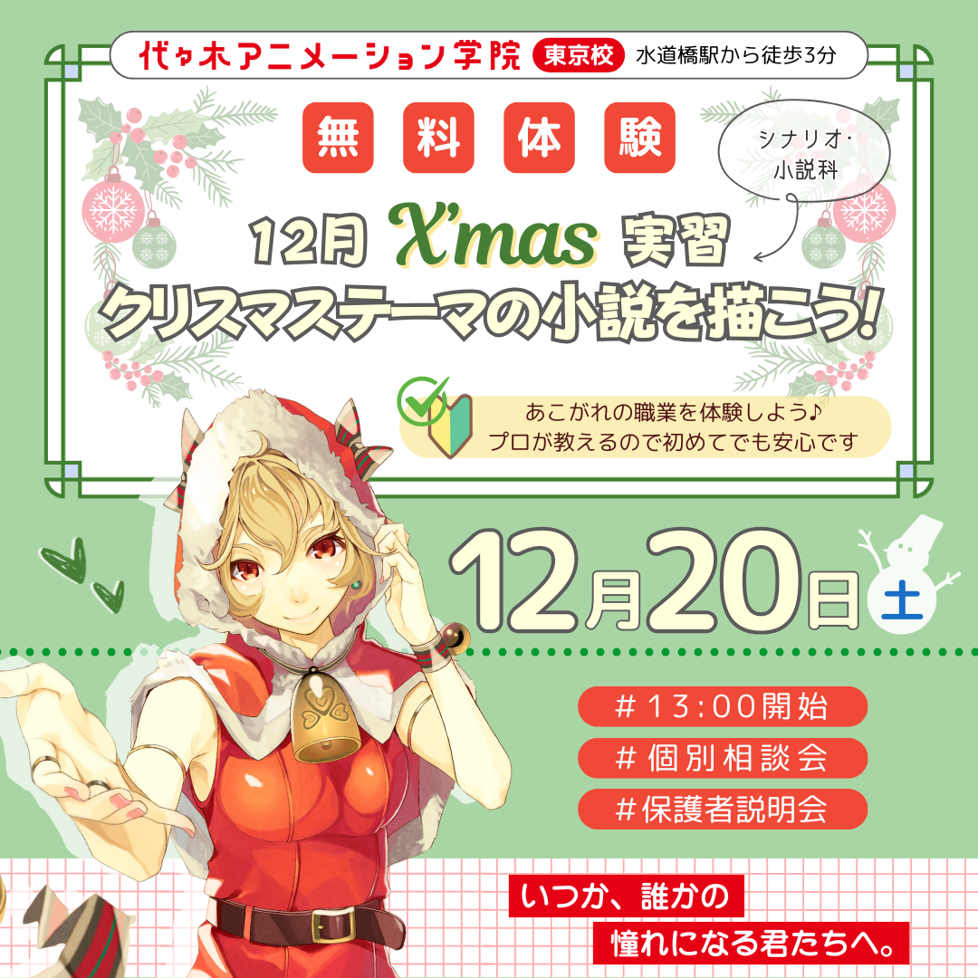 【 シナリオ・小説科 】<12月テーマ実習> Merry🎄Christmas♪ クリスマスをテーマに小説を書こう!