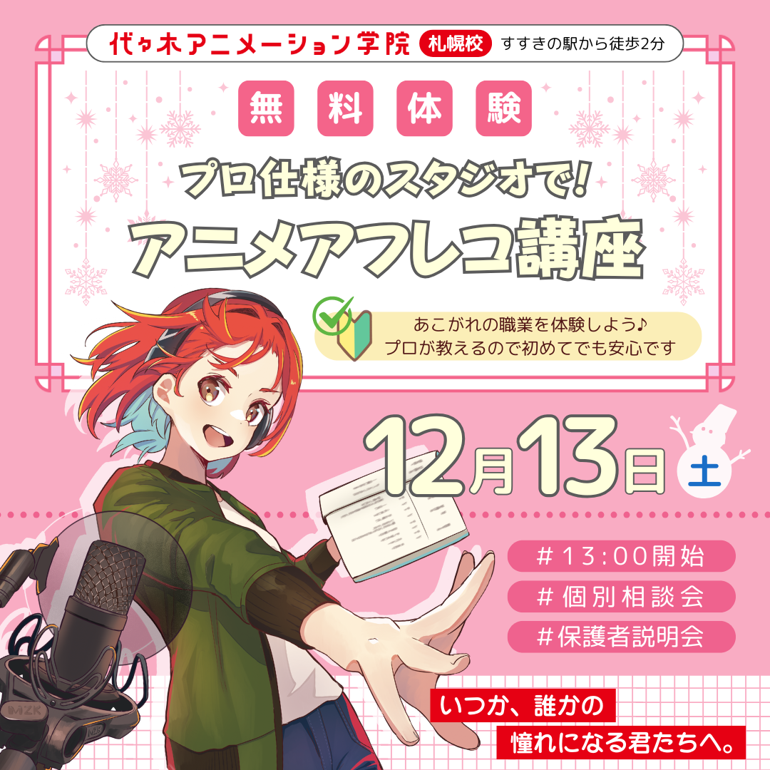 【 声優タレント科 】<初めての方歓迎> 本格スタジオでアフレコ体験!
