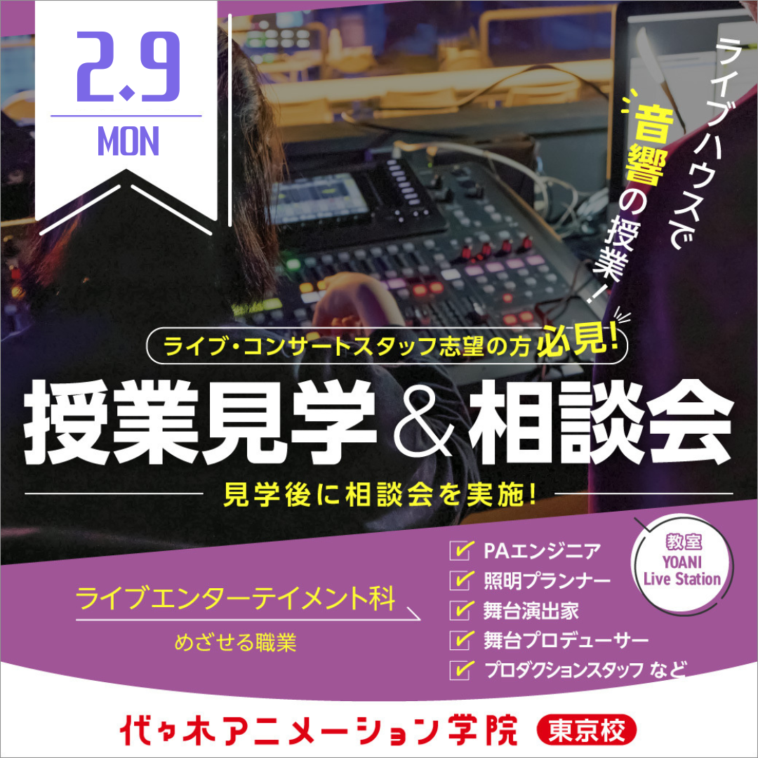 【 ライブエンターテイメント科 】<夕方開催> 授業見学&進路相談会で代アニのリアルを知ろう!