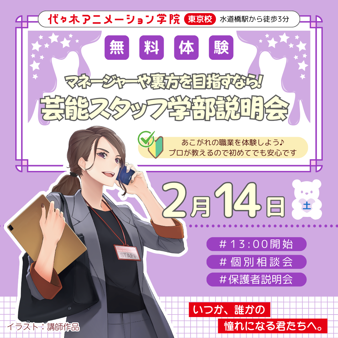 【 芸能スタッフ学部 】<裏方をめざす人向け> 学部説明会で業界の基礎を知ろう!
