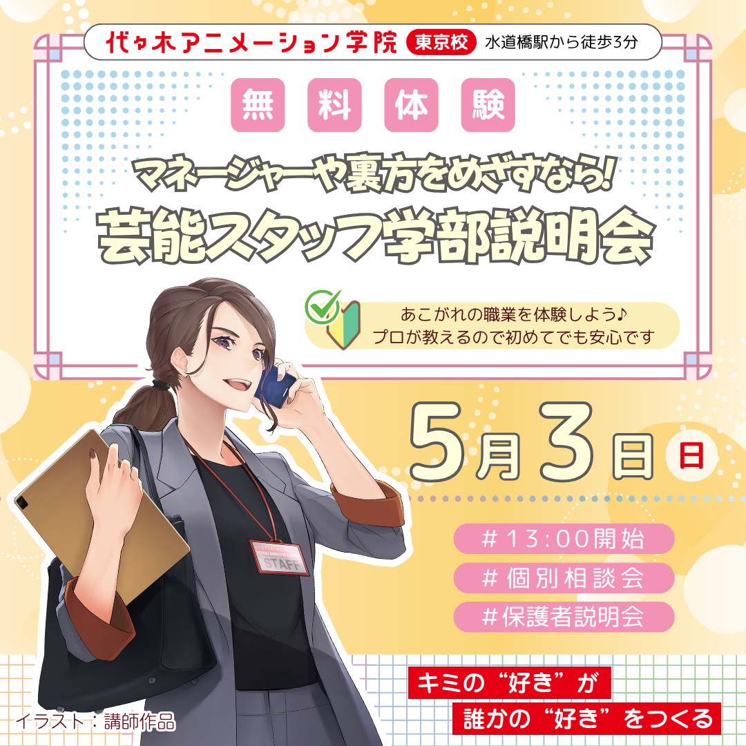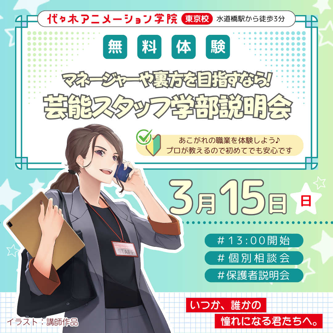 【 芸能スタッフ学部 】<裏方をめざす人向け> 学部説明会で業界の基礎を知ろう!