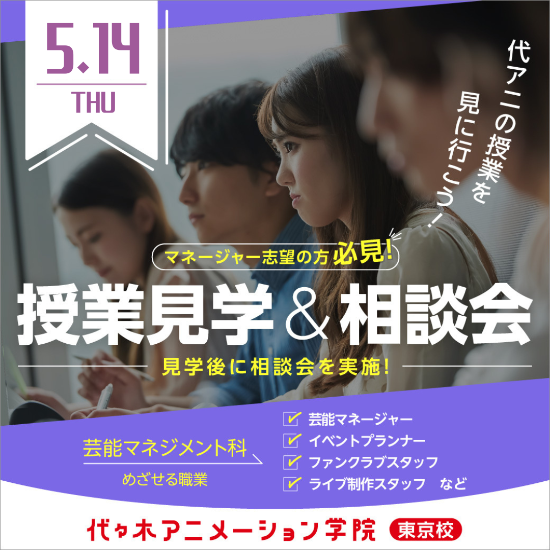 【 ライブエンターテイメント科 】<夕方開催> 授業見学&進路相談会で代アニのリアルを知ろう!