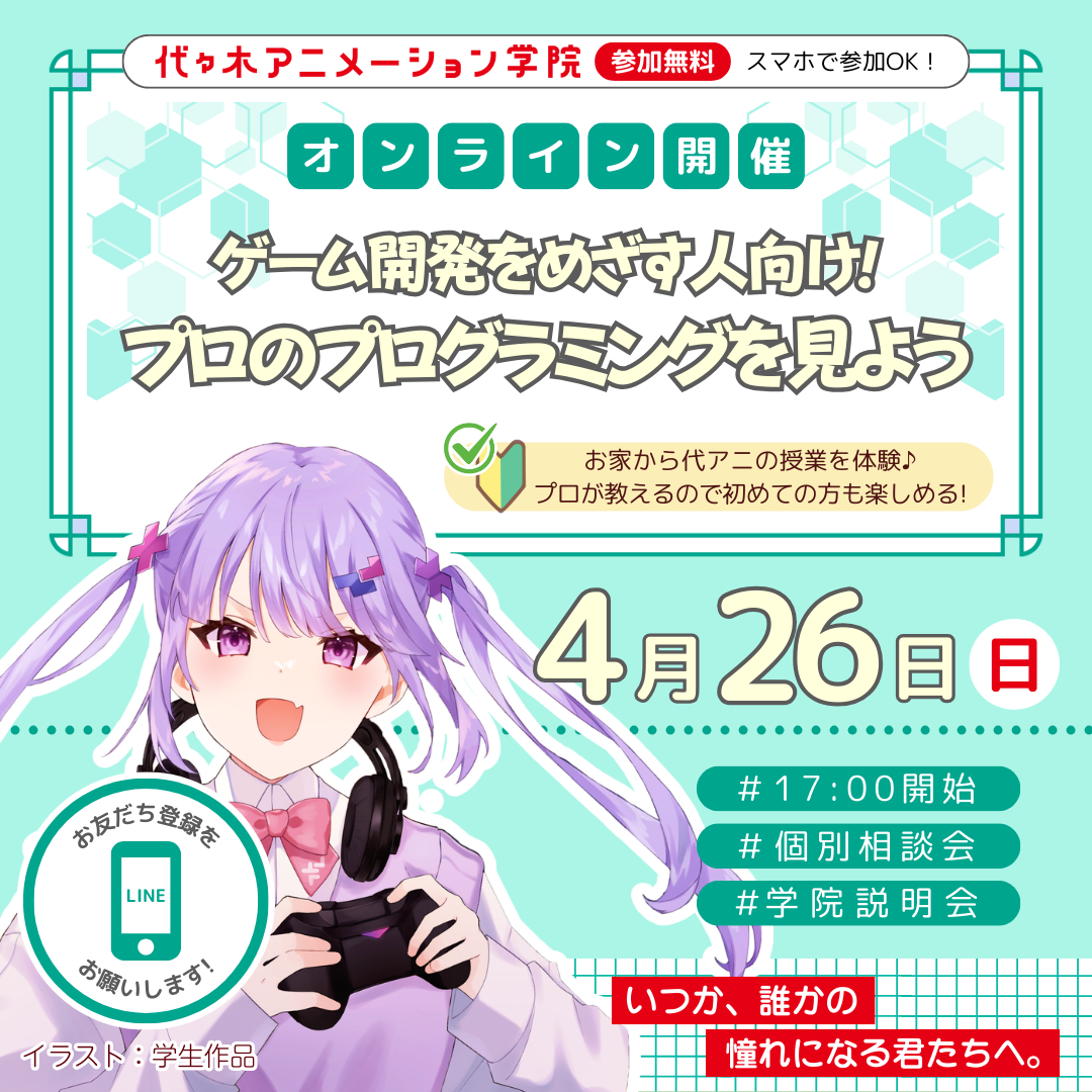 <17時開催:オンライン> ゲーム開発を目指す人向け!プロのプログラミングを見てみよう