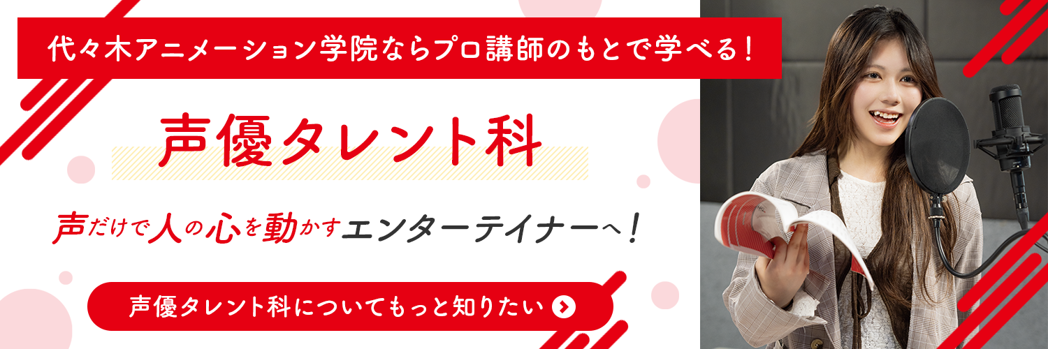 代々木アニメーション学院の声優タレント科では、未経験でもプロの声優を目指せるカリキュラムをご用意!