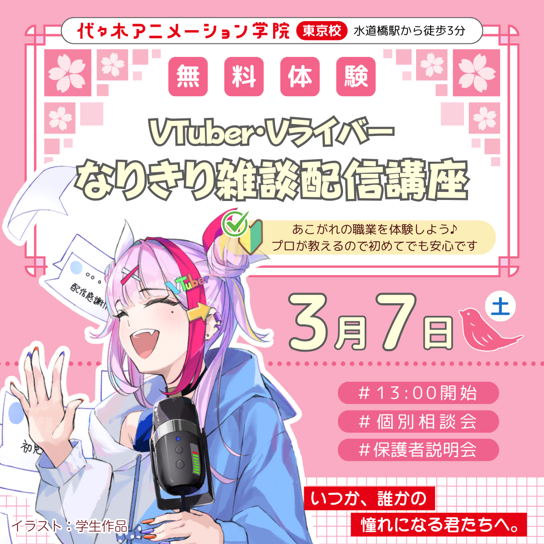 代アニのVTuber科なら、アニメ・エンタメの専門校としての実績・ノウハウを活かしたカリキュラムで、活躍し続けるための技術や知識を学ぶことができます。