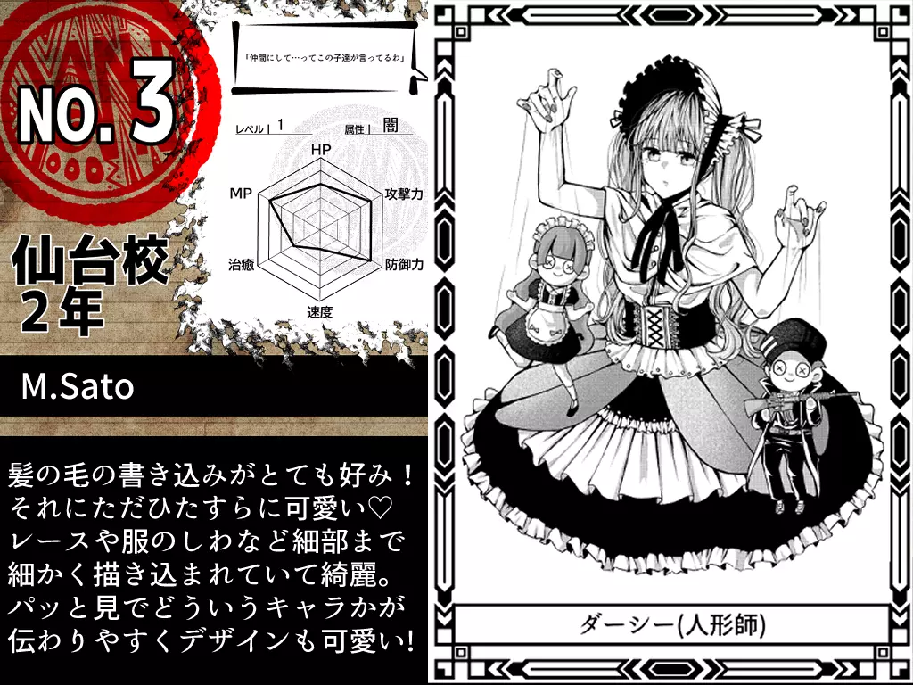 本当にいろいろな作風で素敵な作品がいっぱいなので選ぶのも悩んでしまいますが、マンガ科全学生の中から選ばれたTOP3を皆さんにお届けいたします(^▽^)/