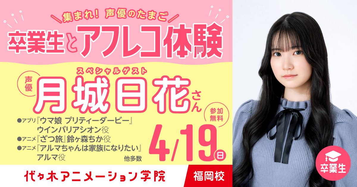 2026年3月1日(日)、代々木アニメーション学院東京校にて、代アニの卒業生で声優の月城日花さんをゲストに迎えたスペシャルトークイベントを開催しました。