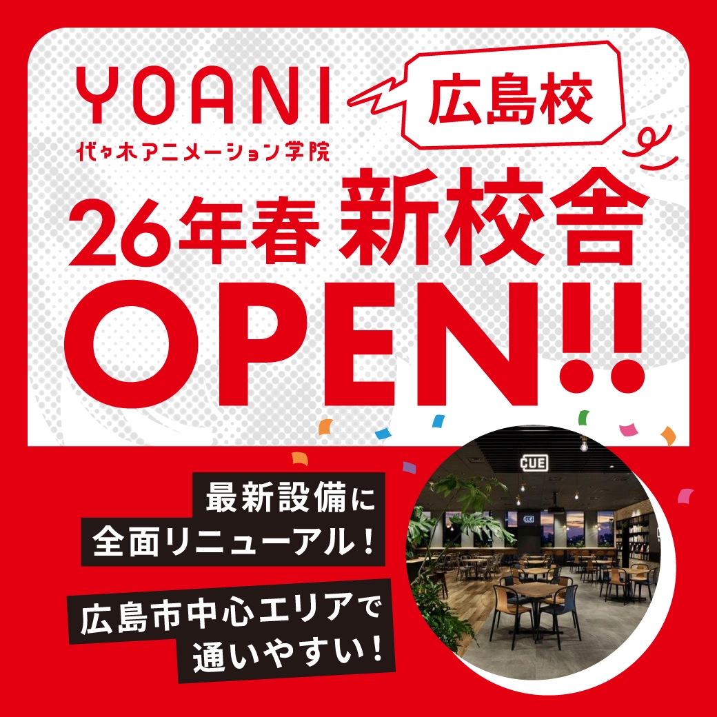 代々木アニメーション学院 広島校ではこれまで、声優・アニメ・マンガ・イラストなど、エンタメ分野を志す多くの学生が学んできました。業界で求められるスキルや表現力が年々高くなり、また学生数も増加する中で、学生が安心して学びに向き合い、挑戦を重ねられる環境を整えることが重要だと考え、今回の移転を決定しました。